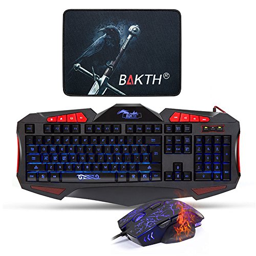 -. Title : BAKTH Adjustable Wired Rainbow LED Backlight USB Gaming Keyboard and Mouse Combos Bundle + BAKTH Customized Large Mouse Mat