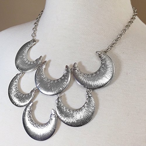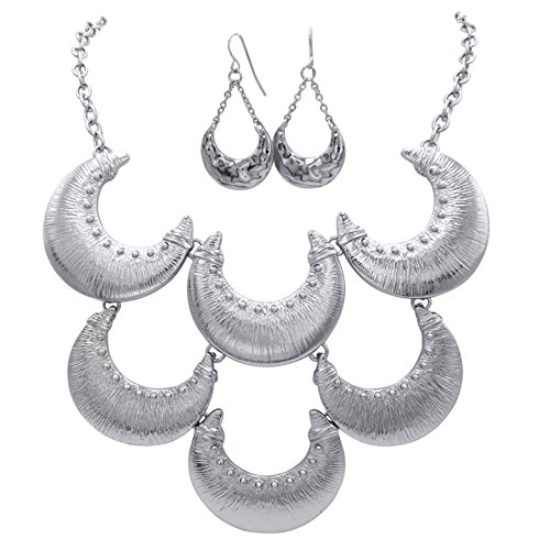 Large Abstract Bib Statement Silver Tone Boutique Necklace & Earrings Set (Crescent Cluster)