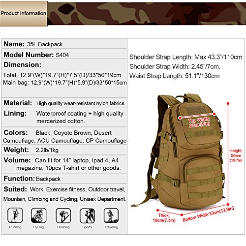 -. Title : Huntvp 35L Tactical MOLLE Assault Backpack Daypack Military Gear Rucksack Large Waterproof Bag Pack Sport Outdoor for Hunting Camping Trekking Cycling