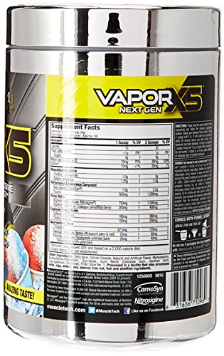 All new VaporX5 Next Gen is a pre workout that delivers unparalleled energy, extreme muscle pumps and performance, a surreal sensory experience plus scientifically validated muscle building power! This intense formula has everything you want in a pre workout and nothing you don’t – zero under dosed key ingredients or fillers. VaporX5 Next Gen pre workout powder delivers uncompromising potency and power for the best workouts of your life! For the ultimate pre workout experience, VaporX5 Next Gen features a unique blend of premium sensory ingredients and a neurotransmitter precursor. The powerful combination of choline, theanine and Alpinia officinarum provides a unique sensory experience, while a research-inspired dose of a precise caffeine molecule delivers unbelievable energy & focus.
