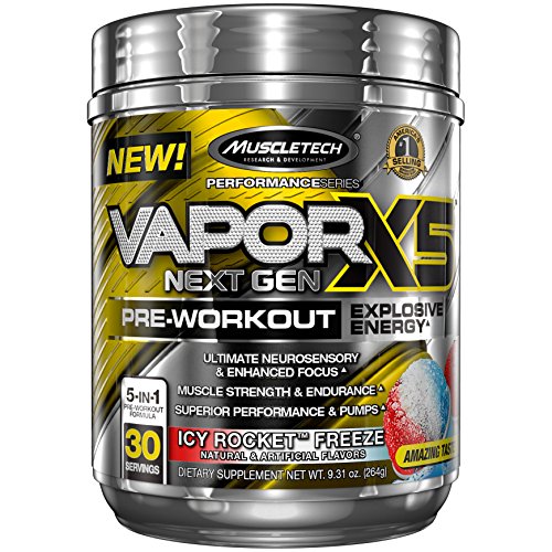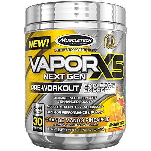 VaporX5 Next Gen pre workout powder delivers explosive energy and focus. Its unique combination of a precisely dosed neurotransmitter precursor and a potent amount of caffeine will fire up your energy & enhance your focus