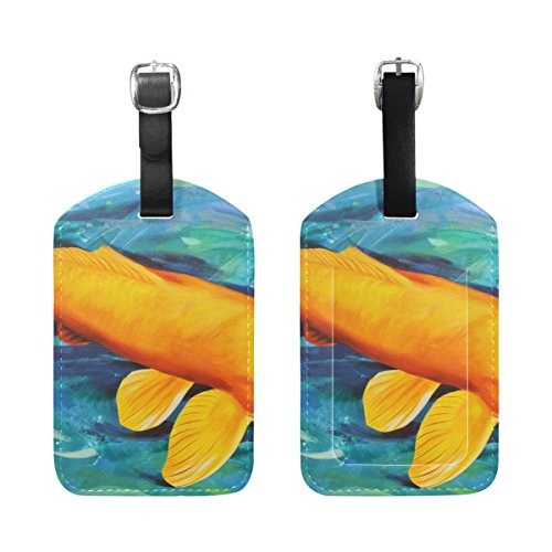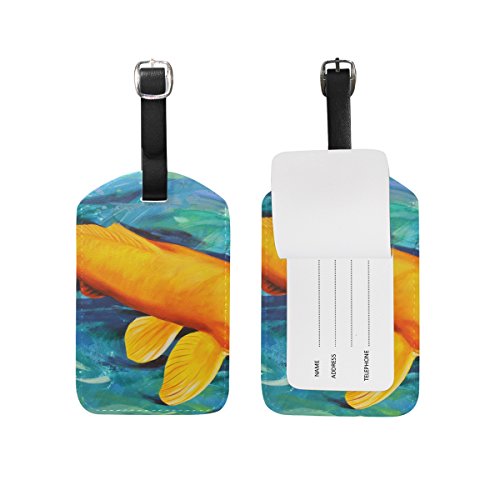 (My Little Nest)/Accessories/Luggage, Bags Travel/DIRECT FROM USA/Travel Luggage Tag Goldfish Painting PU Leather Baggage Suitcase Tag Name Address ID Label 1 Piece