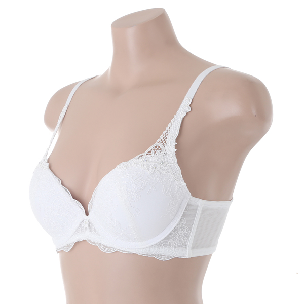 컵 전체에 잔잔한 자수로 포인트를 준 제품입니다.컵상변과 어깨끈까지 이어지는 입체감있는 자수와 핫픽스(큐빅) 포인트로 화려한 느낌도 더해줍니다.