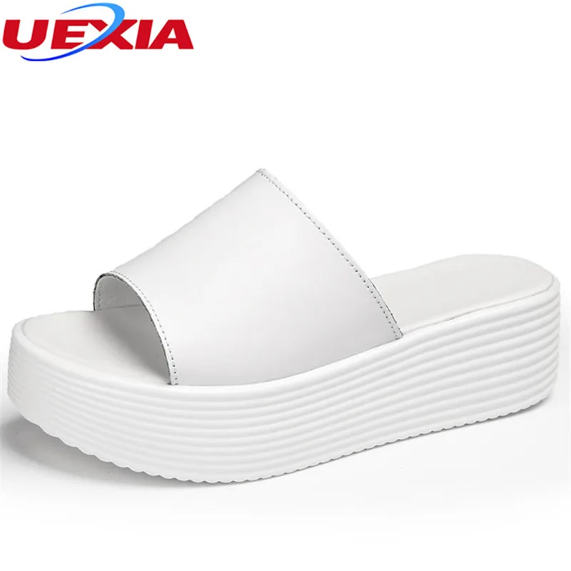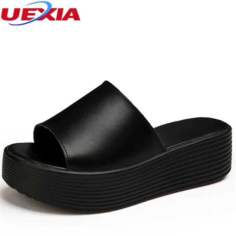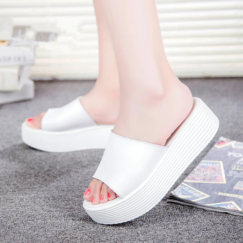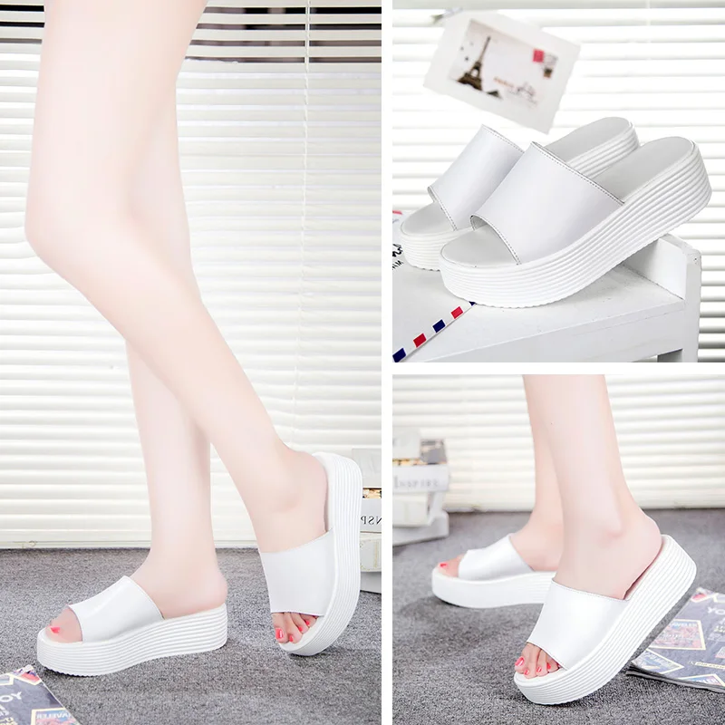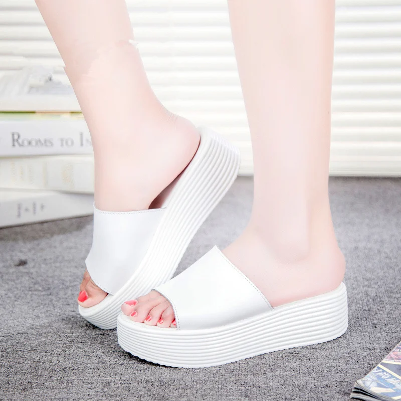 Leather Peep Toe:Slippe Women Wedge