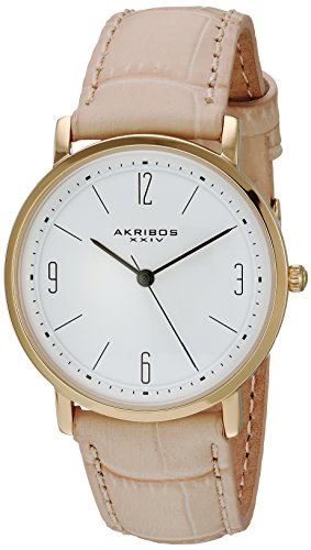 -. Title : Akribos XXIV Women's Quartz Gold-Tone Case with White Dial on Beige Alligator Embossed Genuine Leather Strap Watch AK922BG