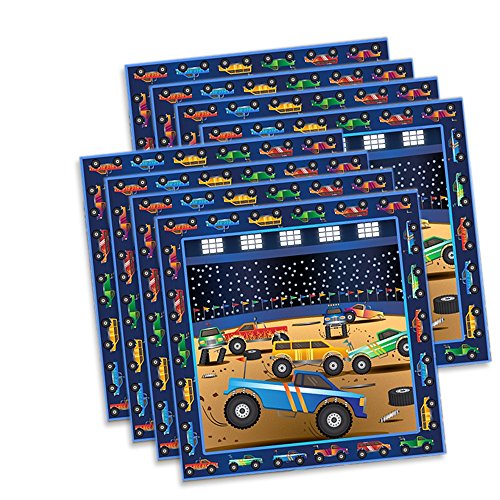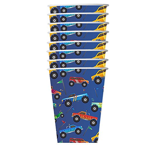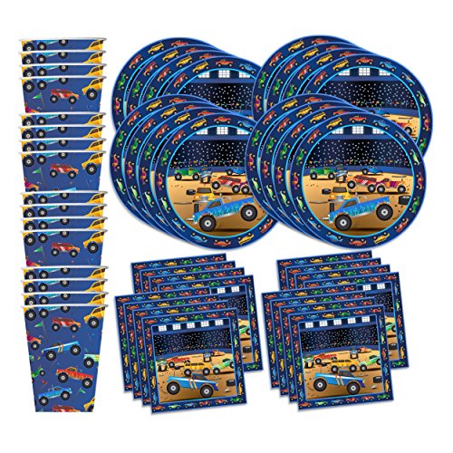-. Title : Monster Truck Party Supplies Set Plates Napkins Cups Tableware Kit for 16