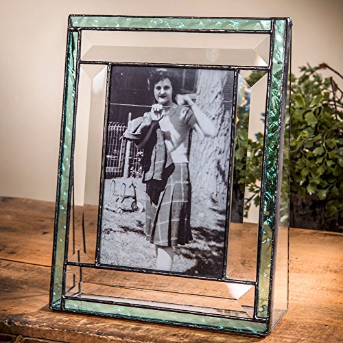 J Devlin Pic 378-46V 4x6 Picture Frame Aquamarine Blue Stained Glass Tabletop Photo Frame