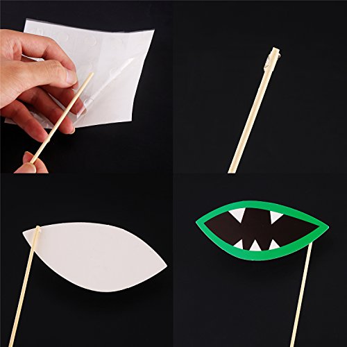 - ❤SIMPLE ASSEMBLY:Easy assemble for everyone to put glue dots and glue-tapes (for larger props) to attach bamboo sticks onto props, don’t worry the photo booth will fall off the stick.