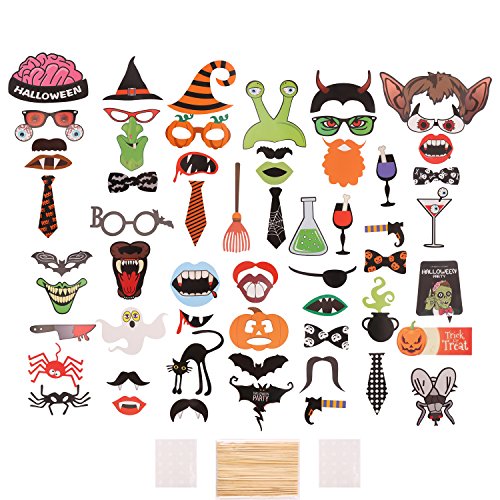 DECORA 59 Pieces Halloween Photo Booth Props Funny Trick or Treat Photograph Posing Props DIY Kit for Halloween Party Deocration