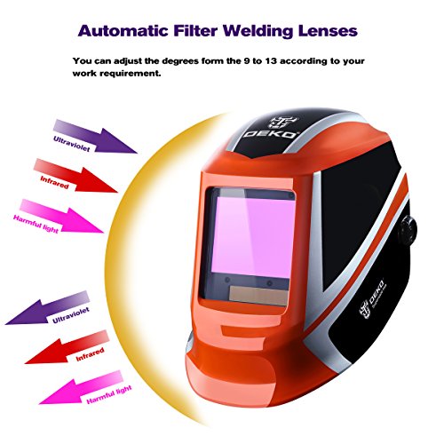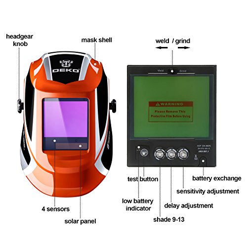 INTELLIGENT, PRACTICAL AND COST-EFFECTIVE: The Auto Darkening Filter (ADF DX-980N) enables welders to adapt to various working environments by controlling the shade of the lens; Sensitivity adjustments from ambient lighting sources; Battery powered with solar panel technology for longer life (up to 5000 hrs).