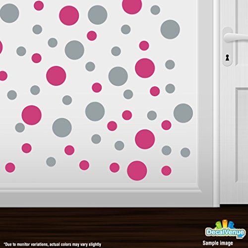 Set of 30 - Hot Pink / Metallic Silver Circles Polka Dots Vinyl Wall Graphic Decals Stickers