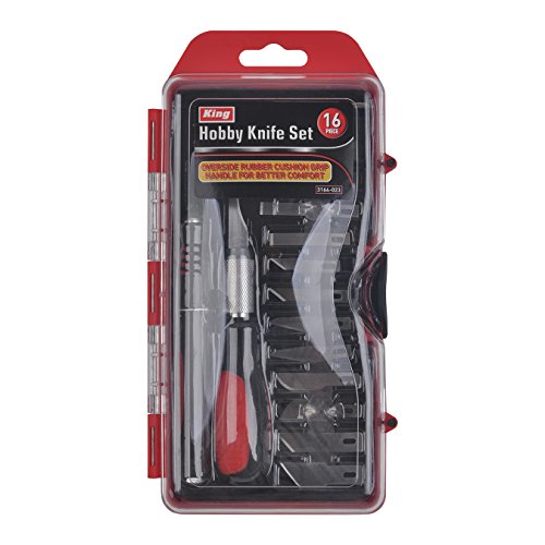 KING 16-pc Hobby Knife Set (3164-0) w/ Precision Cutting Blade Assortment, Screwdriver and Twizzers