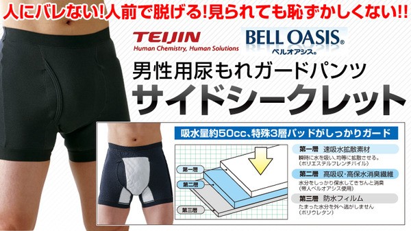 この「サイドシークレット」はこれまでの男性用失禁パンツとは違い、見た目は普通のボクサートランクス!でも嫌な尿モレをしっかりガード!!