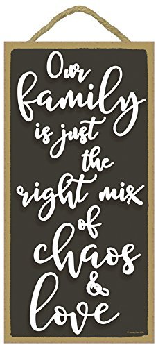 Our Family is Just the Right Mix of Chaos and Love - 5 x 10 inch Hanging, Wall Art, Decorative Wood Sign Home Decor