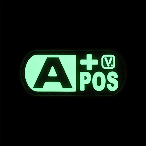 -. Feature : Easily display your blood type on clothing, tactical or medical gear, day or night! / Size: 2.25" (W) x 1" (H) Oval / Super bright glow-in-the-dark can glow for up to 8 hours in darkness. / Rounded corners prevent snagging & hook fastener sewn on backside attaches to any loop surface