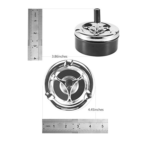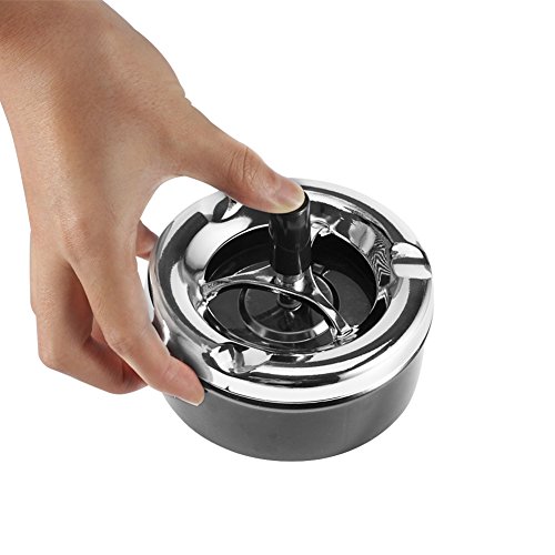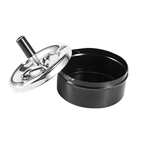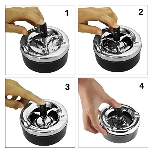 -. Feature : Round Push Down Ashtray Metal / SpinningTray Easy to Clean / Black Color / Air Tight