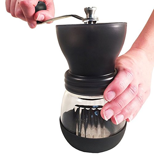 -. Brand : AMFOCUS -. Feature : Ceramic grinding mechanism and stainless steel hand crank for an easy and consistent coffee grind. / The grinder is adjustable from fine to coarse, simply to grind coffee beans and fit all appetite. / Non-slip base that ensures stability. / Simple dismantle construction makes cleanup a breeze. / Bonus glass container, perfect for coffee shop displays or as a birthday gift. -. Label : AMFOCUS -. Manufacturer : AMFOCUS -. ProductGroup : Kitchen -. ProductTypeName : KITCHEN -. Publisher : AMFOCUS -. Studio : AMFOCUS -. Title : Ceramic Manual Coffee Bean Grinder, Household Flour Mill with Glass Jar