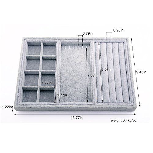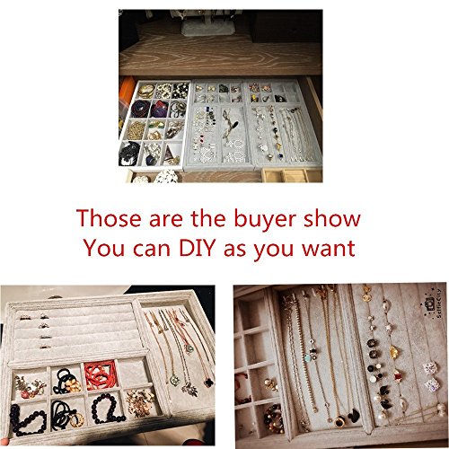 ★HANDMADE AND STACKABLE: Made by hand with precision, we make sure every compartment is aligned and the velvet materials stretched so that there are no bumps. Each of our jewelry trays is designed to fit on top of another so that they don’t touch and damage each other. You can fit them in a 15"wide x 11"deep drawer or rest them on a dresser or a valet.