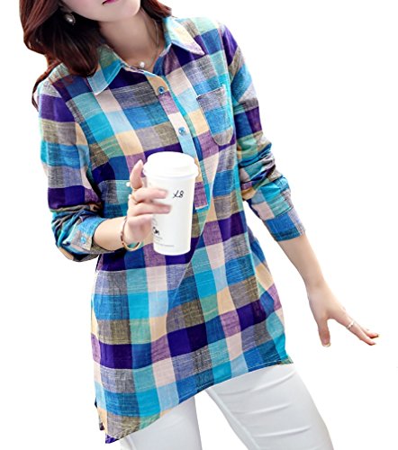 -. Title : 【 Big laugh 】 レディース チュニック カジュアル チェック 長袖 ゆったり 人気 シャツ 柄 きれいめ コットン 秋