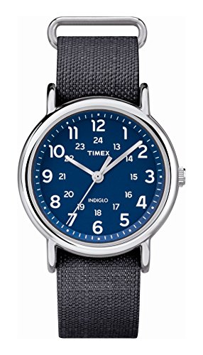 Watch featuring round blue dial with Arabic hour markers, Indiglo night-light, and 24-hour time on inner dial