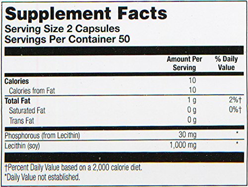 Solaray Lecithin Oil-Free Capsules 1000mg, 100 Count