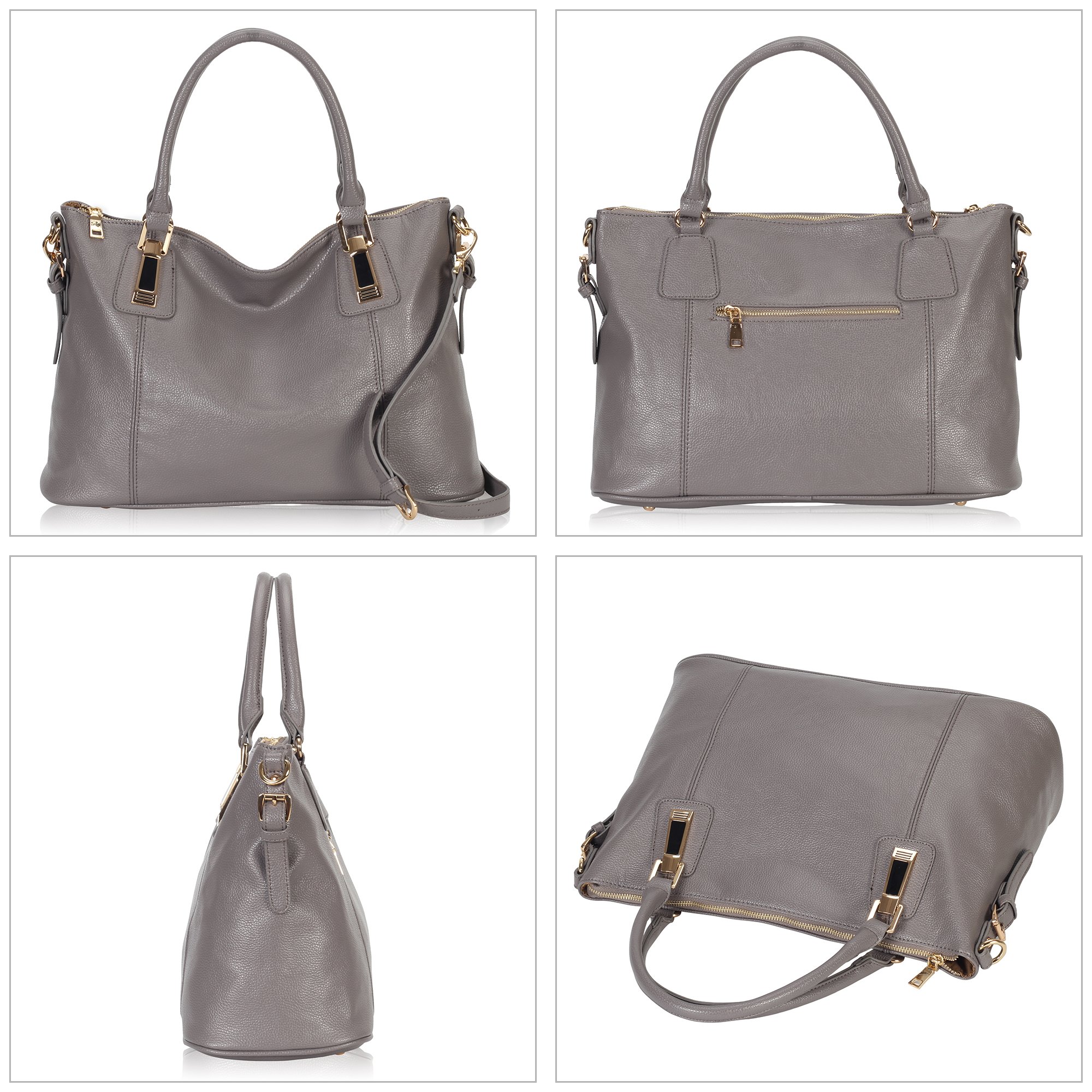 ◆ Inside: two open pockets + two zipper pockets + one central divider.