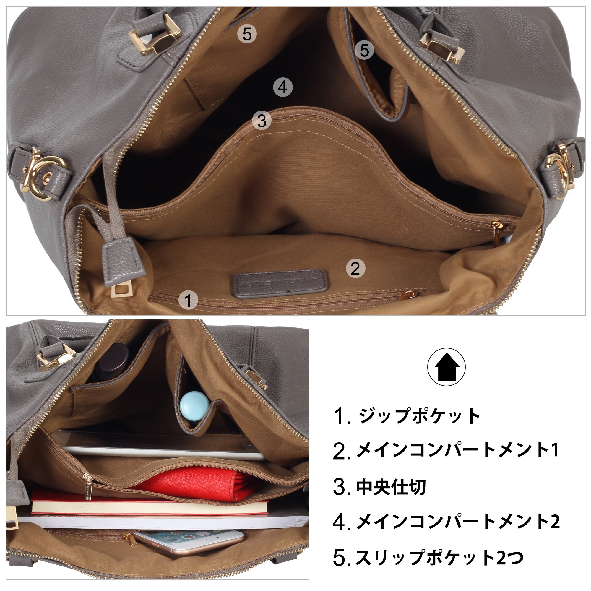 ◆ Main compartment: 2 pieces