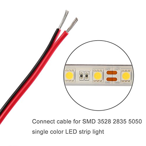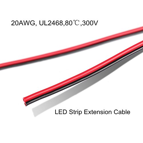 YOUKOYI 65.6ft/20m LED Strip Extension Cable Wire Connector Cord for Single Color 3528 5050 2835 Strip Light, UL2468, 20AWG