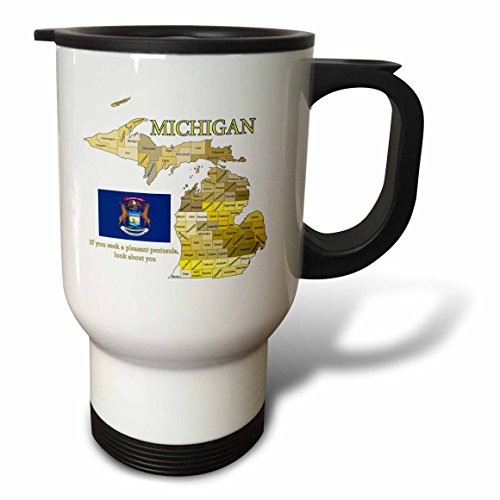 3dRose tm_195253_1 Flag, Map and Motto of Michigan with All Counties Labeled Travel Mug, 14 oz, White