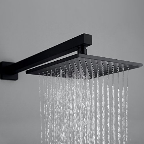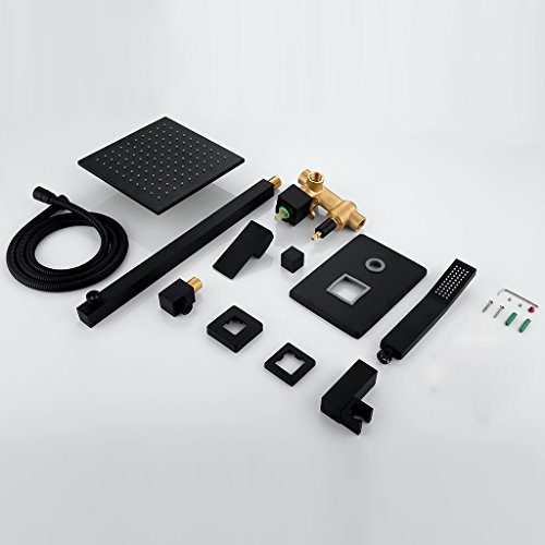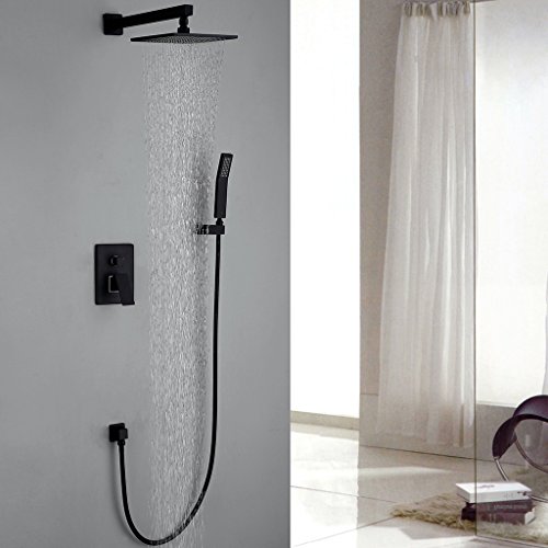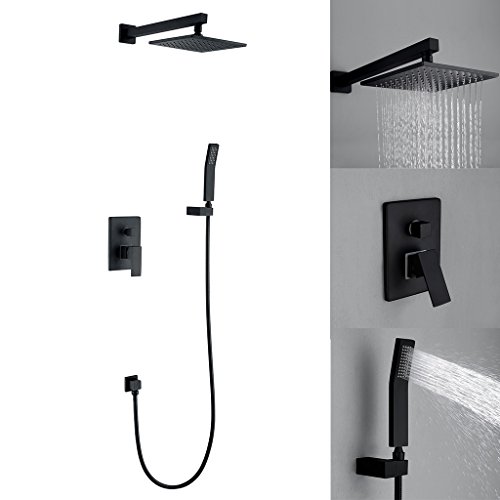 Wall Mounted Shower Faucet Set with 8" Metal Rain Shower Head and Hand Sprayer, Black
