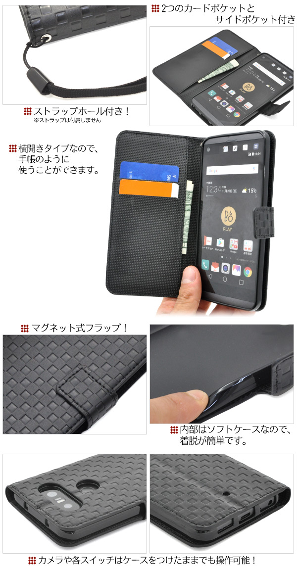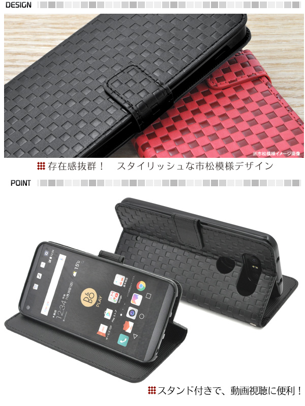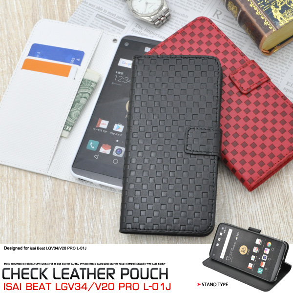 使いやすい手帳型ケース! isai Beat LGV34/V20 PRO L-01J用市松模様デザインスタンドケースポーチ | | | |