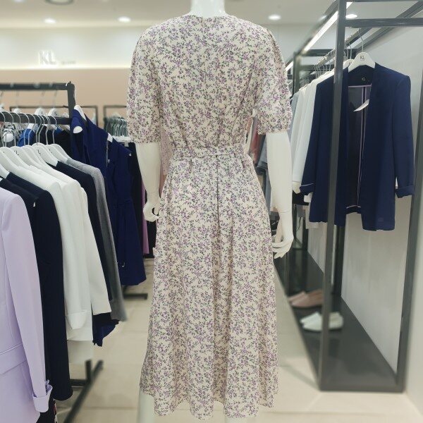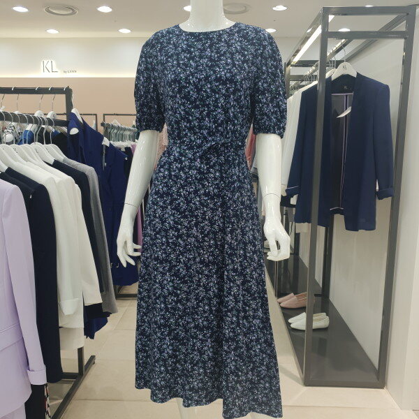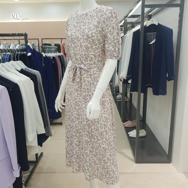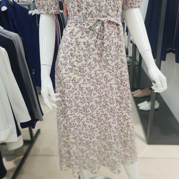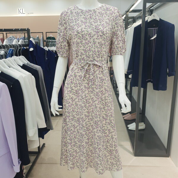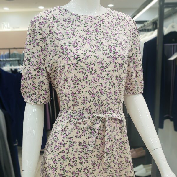 라운드넥으로 잔꽃이 은은하게 들어가 사랑스러운 원피스예요
