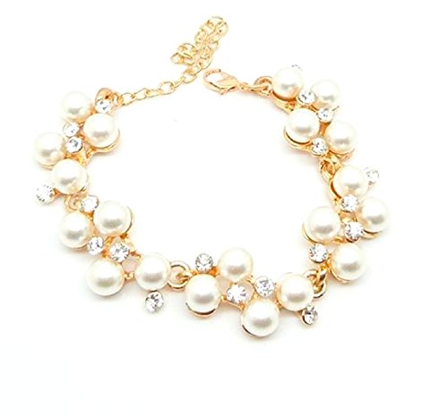 -. Feature : パールとプチビジューが組み合わされたとってもキュートで可愛いデザインのパールブレスレットゴールド新登場♪ / フォーマルなパーティードレスなどにはもちろん、デイリーにもコーデしてオシャレのアクセントになり、エレガントな女性を演出します。 / お揃いのネックレスとピアスを組み合わせる事で、更に華やかな大人の女性の魅力を引き立ててくれるブレスレットです。 / 自分へのごほうび、友人や大切な人へのプレゼント、恋人へのギフトにも最適なブレスレットです / カラー:ゴールド×パール・クリア サイズ:約24cm アジャスター含む 素材 フェイクパール ラインストーン 合金