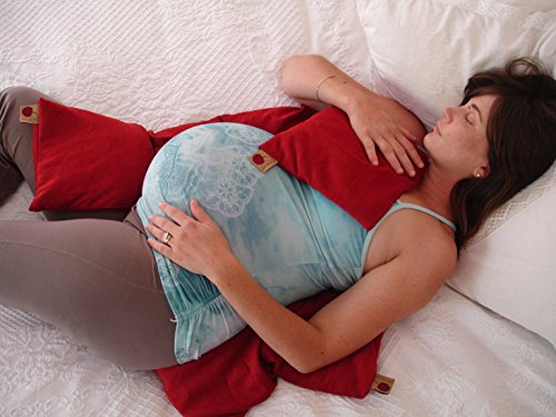 Relax with Extra LARGE MOIST HEAT PILLOW: 9.5” x 28” Soft, Durable, 100% cotton, NATURAL-DYED, Red DENIM