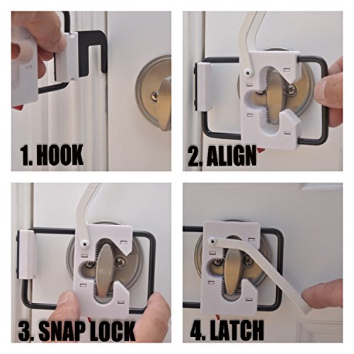-. Feature : Portable Deadbolt Guard. No screws or tools needed / Slim & Light at 4 oz. Strong & Durable with steel bar frame / Fast & Easy snap-on method in 3 seconds & release in 1 second / Multi-Lock Positions: Horizontal, Vertical or Diagonal deadbolts / For inward opening doors: Left door, Right door or Double doors