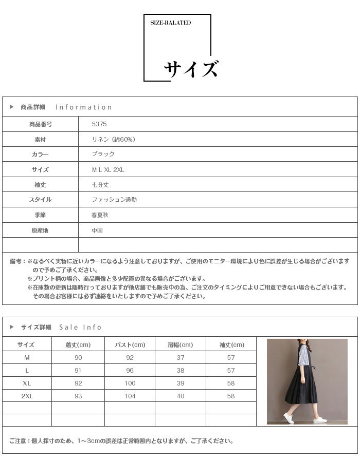 マキシワンピース レディース 七分丈切り替えリネンワンピース チュニック 無地 Aライン ワンピース 夏 ワンピース 春 ゆったり 森ガール心地よいリネンの風合い。夏こそさらりとリネンワンピースです。七分袖切り替えデザインで、一枚着るだけでコーディネートが完成します◎ゆったり着られて、大人可愛く決まります。着心地よくて質感が魅力です。商品詳細:素材:リネン(綿60%)カラー:ブラックサイズ:M L XL 2XL袖丈:七分丈スタイル:ファッション通勤季節:春夏秋原産地:中国マキシワンピース レディース 七分丈切り替えリネンワンピース チュニック 無地 Aライン ワンピース 夏 ワンピース 春 ゆったり 森ガール