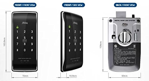 -. Feature : Door lock (key) / Card key + Number / AA batteries (4) / Touch screen / Double lock / Intrusion alarm / Imaginary function / Battery replacement notification / Manner mode / Emergency power supply / Mischief prevention / Metal chrome frame / Icon UI / Volume control / Hack prevention / Auto lock / Security function Disarm function / Auto lock / Size: 72 x 163.6 x 18.8 (WxHxDmm)
