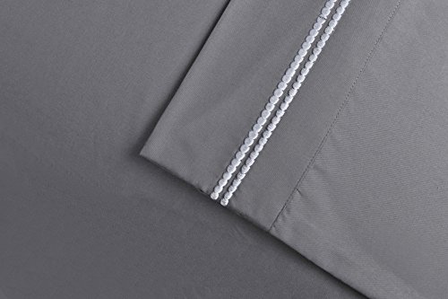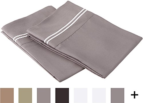Super Soft Light Weight, 100% Brushed Microfiber, King, Wrinkle Resistant, 2-Piece Pillowcase Set, Grey with White 2-Line Embroidery Detail