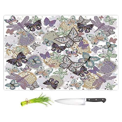 DiaNoche Designs CB-JulieAnsbroButterPaleGreen2 Artist Julie Ansbro-Butterflies Pale Green Cutting Boards from, Large 15" x 11"