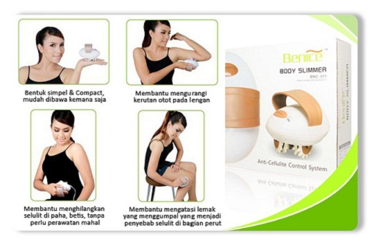 Benice Body Slimmer adalah sebuah produk inovasi terbaru penghancur lemak yang bisa dipakai dimanapun anda berada. Cepat, praktis dan aman dipakai. Hanya dengan 30 menit sehari, 72 roda gigi pada alat body slimmer akan berputar cepat melingkar di tubuh anda. Putarannya terasa jauh hingga di bawah kulit & gerakannya tidak hanya terasa di permukaan kulit tapi juga sekaligus menghancurkan lapisan lemak di tubuh anda.