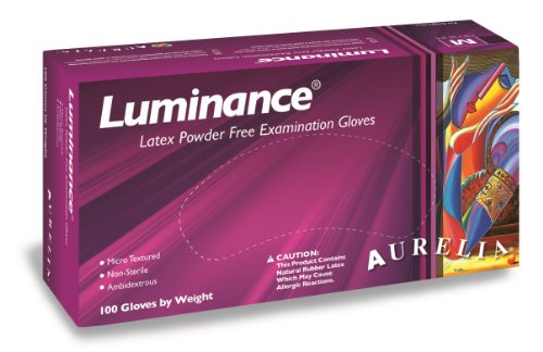 Aurelia Luminance Latex Glove, Powder Free, 9.4" Length, 5 mils Thick, X-Large (Pack of 100)