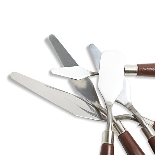 - KNIFE PAINTING: Great assortment for Mixing, Spreading, Scumbling, Spreading, Scratching, Large Paintings, Murals, Theater work. Good choice for artist,hobbyist,kids,students and adults.Complement your painting supply arsenal with this go-to knife set boasting assorted steel blade shapes and easy-grip wood handles.