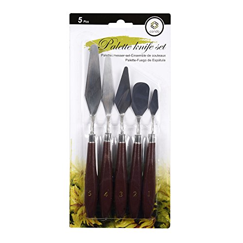 - ARTIST PALETTE KNIFE: 12.75'' W x 6'' H x 0.5'' D, 5 Pieces Set includes 1-each of all 5 Standard Paint knife Styles.Every spatula has one individual package in case the entire safety. This high quality knife has been crafted with the finest stainless blade that resists all wear and corrosion from any media including acrylics.