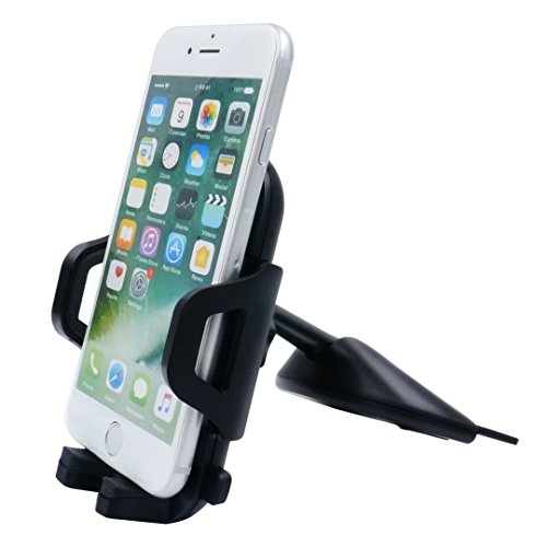 CD Slot Car Mount, LSY Universal Easy One Touch 360 Degree Rotating Car Cradle Stand Cell Phone Holder for iPhone 7/7Plus/6S/6Plus, Galaxy 7/S6/S5/Note, Blackberry, LG, HTC, Huawei and more (Black)