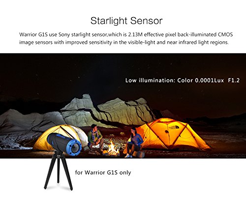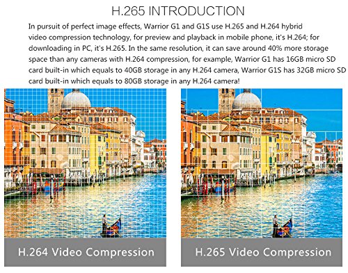 - 32GB Built-in MicroSD Card, H.265 & H.264 Hybrid Video Compression Technology: In the same resolution, it can save around 40% more storage space than any other cameras that are with H.264 compression. Warrior G1S has 32 GB micro SD card built-in which equals 80 GB storage of any H.264 cameras.