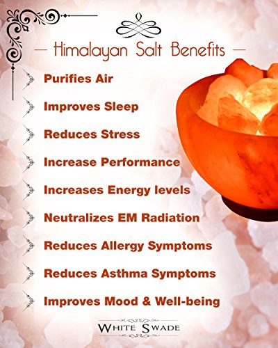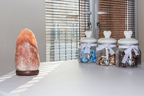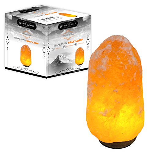 WhiteSwade Hand Crafted 8-Inch Himalayan Rock Crystal Salt Lamp with Dimmer Switch, Neem Wood Base, 15W Bulb and 6-Feet Cord