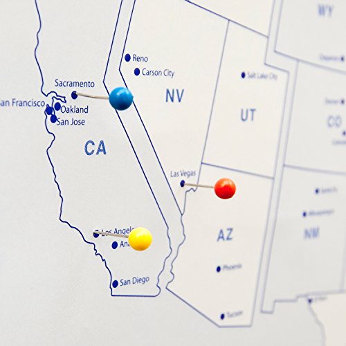 U Brands Map Push Pins, Plastic Head, Steel Point, Assorted Colors, 100-Count