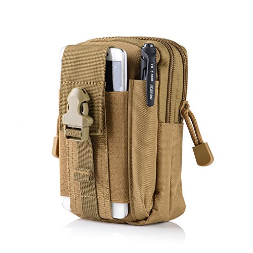 -. Feature : Made of premium and durable 600D waterproof Nylon. Dimension: 7 X 4.8. X2.4 inches (L x W x T ) / 2 zippered compartments(the front one with mesh layer, the back one with a nylon layer), exterior cellphone pocket (fits max size 6S Plus) with buckle strap closure, exterior pen sheath for rapid access. / Strong webbing belt loop on rear, deadly hard wearing & heavy duty. Molle attachment straps to be worn on belt, vest or pack. / Perfect for storing cell phone, keychain, GPS device, digital cameras, medical supplies, small tools, and everything else you need readily accessible / Can be used as a small tactical EDC pouch, waist bag, gadget pouch, utility belt pouch, outdoor hiking pouch, or travel pouch.