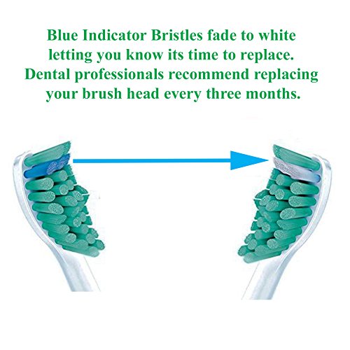 Choose High Quality Toothbrush Heads for your Dental Health and Safety! iHealthia premium standard replacement brush heads are manufactured in a facility approved by FDA, with the highest health and safety standard. The Sonic Replacement Heads have the most comparable quality of Philips Sonicare ProResults HX6013 or HX6014. These sonicare brush heads are built for all snap-on Philips Sonicare brush refills. The bristles are made with high quality end-round Dupont Nylon, which bend easily to ensure flexibility, thorough cleaning capability and enabling both gentle brushing and deeper cleansing between teeth, along the gumline. The curved surface area created by the brush head's radial-trimmed bristles help you maintain contact with the surfaces of the teeth and gums as the brush head pivots. The ProResults Toothbrush Heads are proven to reduce gingivitis, remove plaque and stain, control tartar and improve gum health up to 100% better than a manual toothbrush. The Blue reminder bristles fade to indicate replacement time.