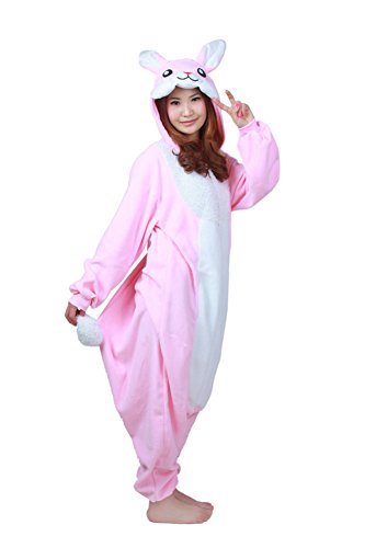 -. Feature : Material: Fleece(100% polyester); light, warm and fluffy. / Features: Button front; side pockets; hooded with ears,eyes and nose for full effect. Matching white splicing and tails to get ultimate cosplay perform look! / Best Choice: Halloween, Christmas, Festival, Cosplay Dress Up, Present Gift, School Party, Performance, Cold Weather, Homewear, Sleepsuit, Outfit, etc. / Good Care: Look after carefully your new pajamas to prevent fading!Hold up in the wash without losing shape and laid flat to dry; Ironing on low heat only if needed. / What You Get: Rabbit Pyjamas, 30-days free exchange or return; If you have any questions before or after you order, just contact us for friendly customer service.